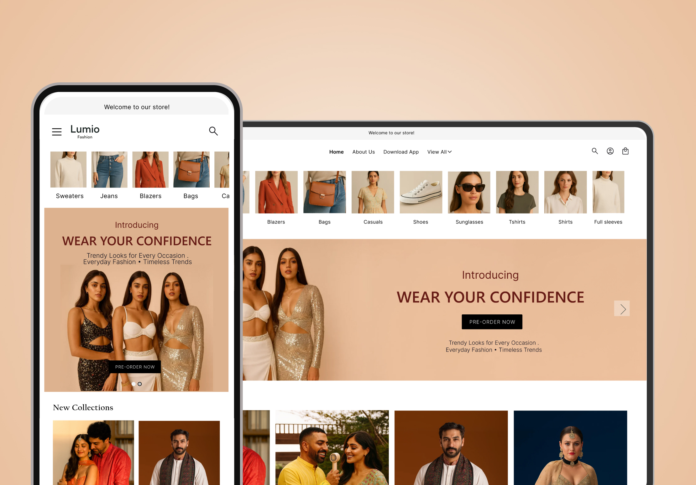 Elegant, trend-driven layout with collection-first navigation. Perfect for clothing, ethnic wear, accessories, and modern fashion stores. Stylish and conversion-focused.
