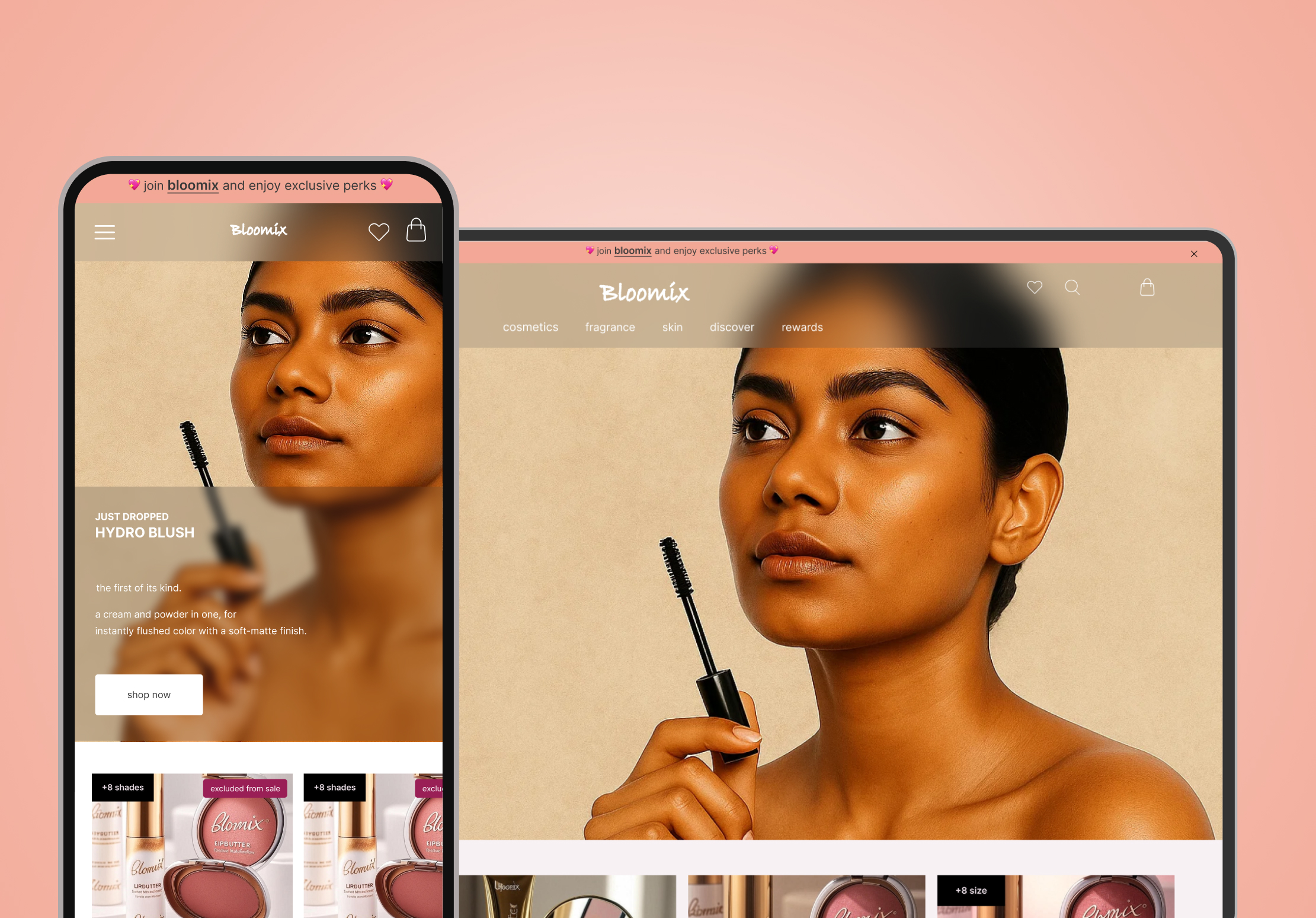 Clean, premium interface with beauty-first product presentation. Perfect for skincare, makeup, wellness, and personal care brands. Trust-building and visually polished.